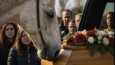Během pohřbu, když rakev právě nakládali do vozu, se z lesa znenadání objevila bílá klisna.