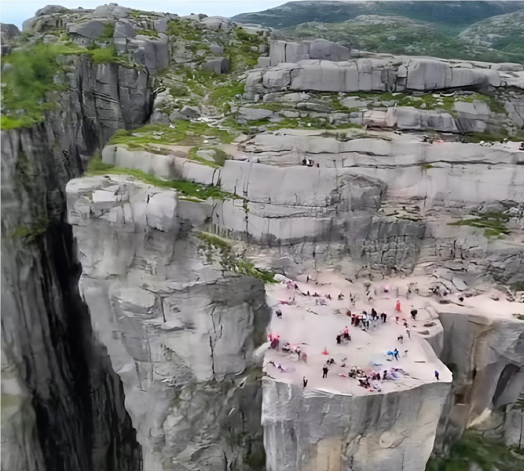 Během pouhých deseti vteřin se okrajová část vyhlídky utrhla a zřítila se do hloubky. Lidé na ní byli staženi dolů. Někteří se pokusili utéct, jiní byli zcela bez šance. Vzduchem se nesly výkřiky, vířil prach a krajina se proměnila v místo utrpení.