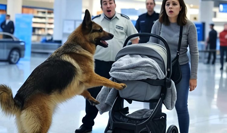 V okamžiku skočila ke kočárku, předními tlapami narazila na jeho rám. Žena vykřikla a ustoupila. Kočárek se zakymácel, modrá deka sklouzla na podlahu a odhalila plačící miminko.