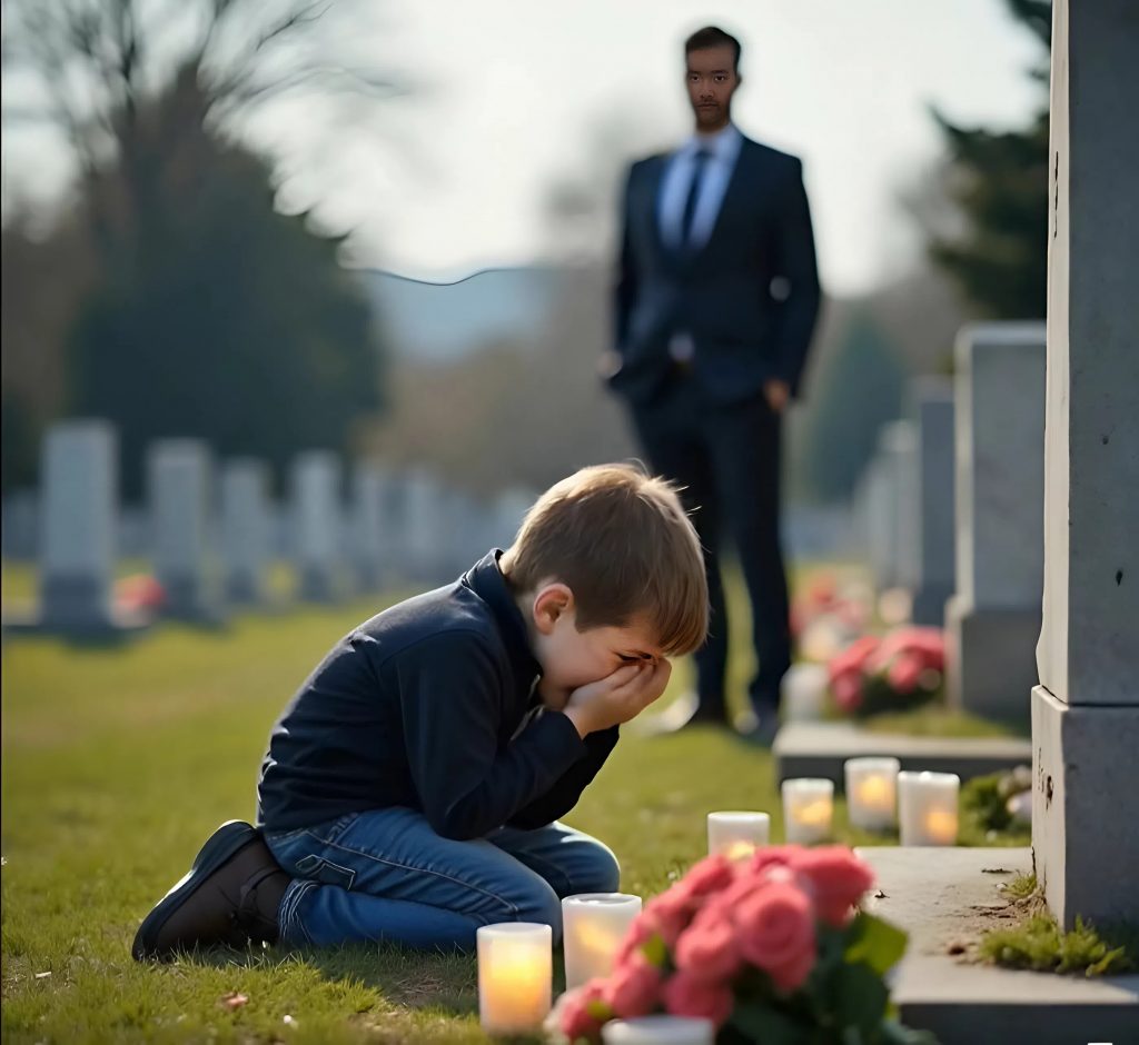 Na samém konci hřbitova, kde byla země ještě čerstvě rozrytá a temná, klečel malý chlapec. Nemohl mít víc než sedm let. Byl hubený, v seprané bundě, oči zarudlé od pláče. Objímal náhrobek, tvář přitisknutou ke studenému kameni, jako by se snažil přiblížit té, která odpočívá pod ním.
