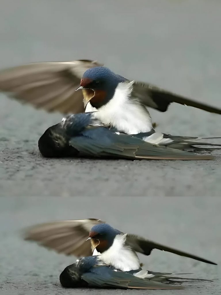 Druhá vlaštovka nezmizela. Naopak, začala kroužit nad místem nehody, jako by nevěřila, co se právě stalo. Poté přistála u svého partnera a jemně ho klovala zobákem, snažila se ho probudit, jako by chtěla říct: „Vstaň, poletíme dál.“