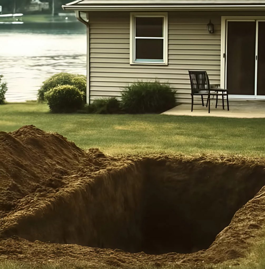 Uprostřed mé pečlivě posekané trávy zela hluboká jáma. Ne nepravidelná nebo rozrytá — byla přesně obdélníková, úhledně vykopaná, hluboká. Připomínala hrob. A ne jen tak náhodou.