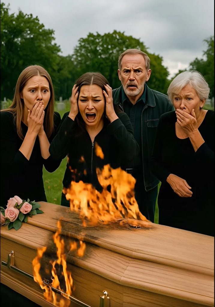 Jakmile hrobníci začali rakev spouštět do hrobu, zaznělo zvláštní prasknutí. Někteří se rozhlédli, ale než stačili zareagovat, z rakve vyšlehly plameny.
