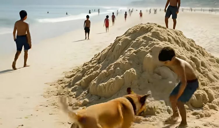 V tu chvíli se z písku vynořilo cosi tmavého. Nejdřív si myslel, že je to odpadek — stará taška, hadr nebo hračka. Ale pes to vytáhl celé ven a všichni kolem ztichli.