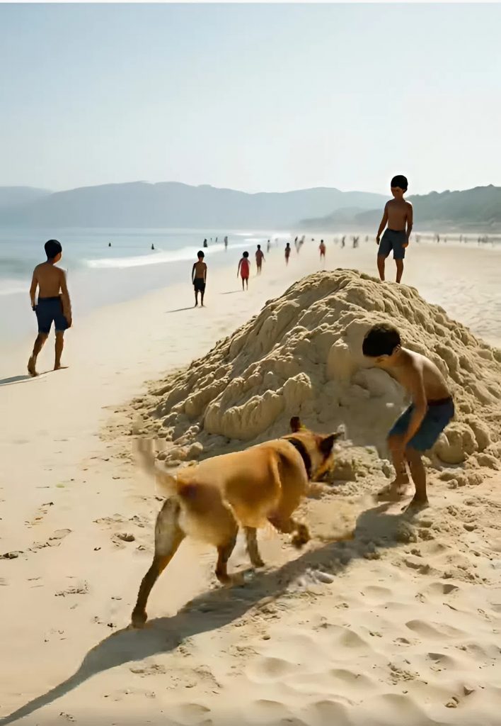 Pes se náhle zastavil a ztuhl, jako by něco ucítil. Jeho pohled se upřel na velkou hromadu písku opodál. Byla nahrnutá narychlo, patrně dílo dětí, které ji nechaly a běžely do vody. Než muž stihl zareagovat, pes prudce vyrazil vpřed. Vodítko mu vyklouzlo z ruky a zvíře se rozběhlo přímo k písečné hromadě.