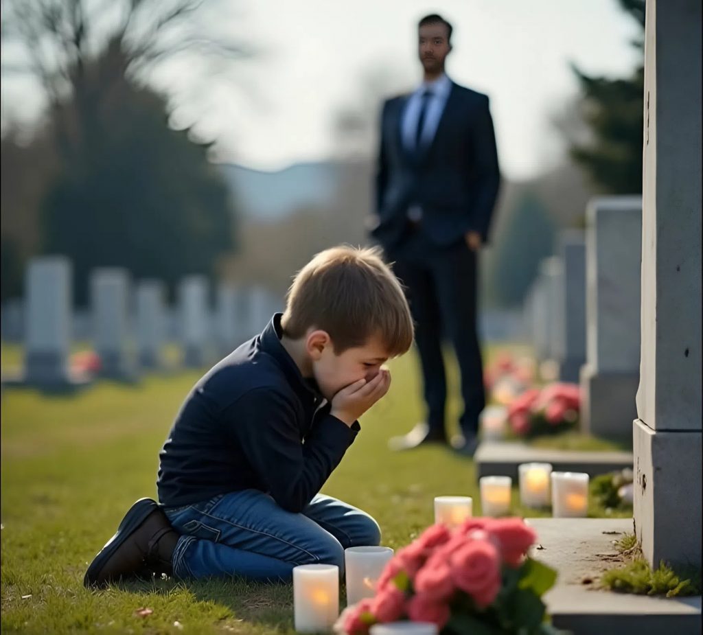 V odlehlém rohu klečel chlapec — hubený, sotva sedmiletý. Na sobě měl obnošenou bundu, kolena umazaná od bláta a tváře plné zaschlých i čerstvých slz. Objímal náhrobní kámen, jako by byl živý, tiskl k němu tvář a šeptal něco, co slyšela jen země pod ním.
