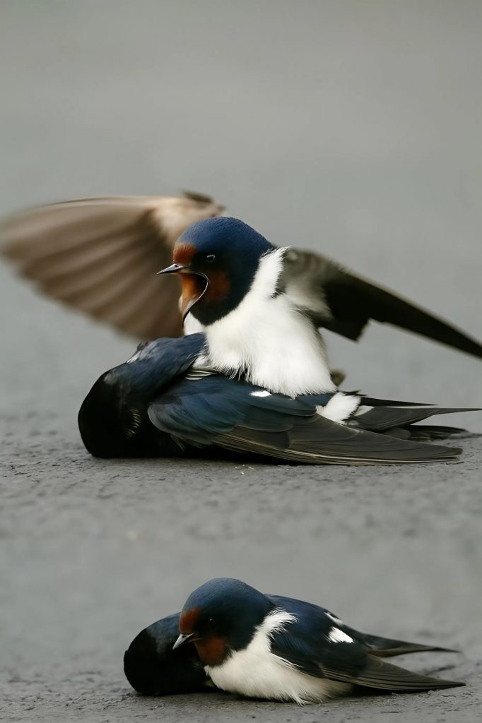 Bylo jasné ráno. Doprava plynula klidně a vlaštovky se jako obvykle řítily vzduchem, střemhlav se vrhaly dolů, aby lovily hmyz. Jedna z nich ale slétla příliš nízko. V tu chvíli projelo auto. Náraz byl okamžitý a malý pták dopadl na asfalt, bez známek života.