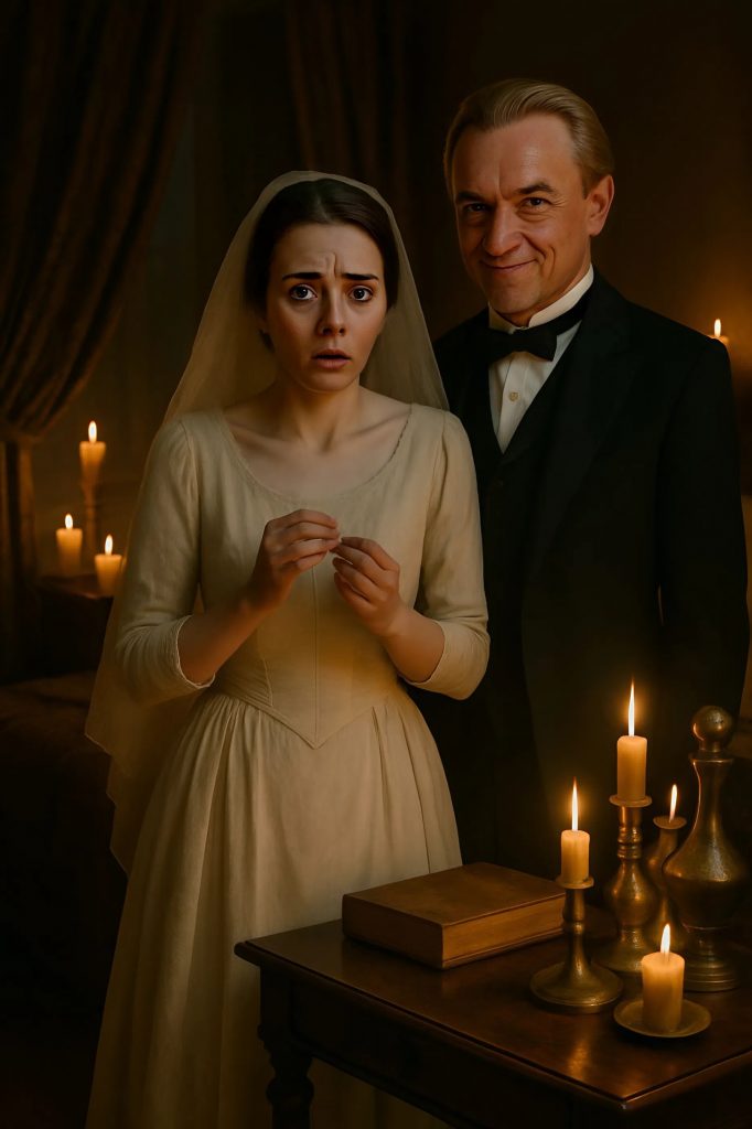 Na nočním stolku vedle postele nestály jen svíčky, ale i stará kniha v kožené vazbě, lahvičky se vzácnými nálevy a soubor předmětů, jejichž účel nedokázala odhadnout. Muž jí tiše řekl, že jejich svazek není jen manželství, ale „smlouva“ – a že v ní má ona nyní zvláštní roli.