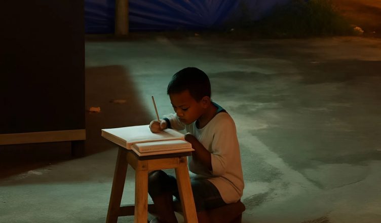 Je mu teprve devět let. Zatímco většina dětí večer usedá k počítačům nebo tabletům, on bere do ruky sešit a tužku a vyráží ven. Jeho rodina si nemůže dovolit platit účty — elektřina je pro ně nedosažitelným luxusem.