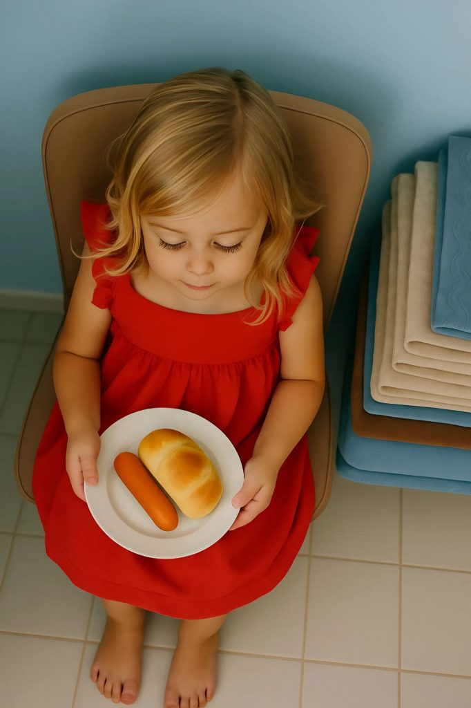 Odvedla moji dceru do prádelny, posadila ji na skládací židličku vedle hučící pračky a před ni postavila talíř – jednu obyčejnou párek a kousek suchého chleba.