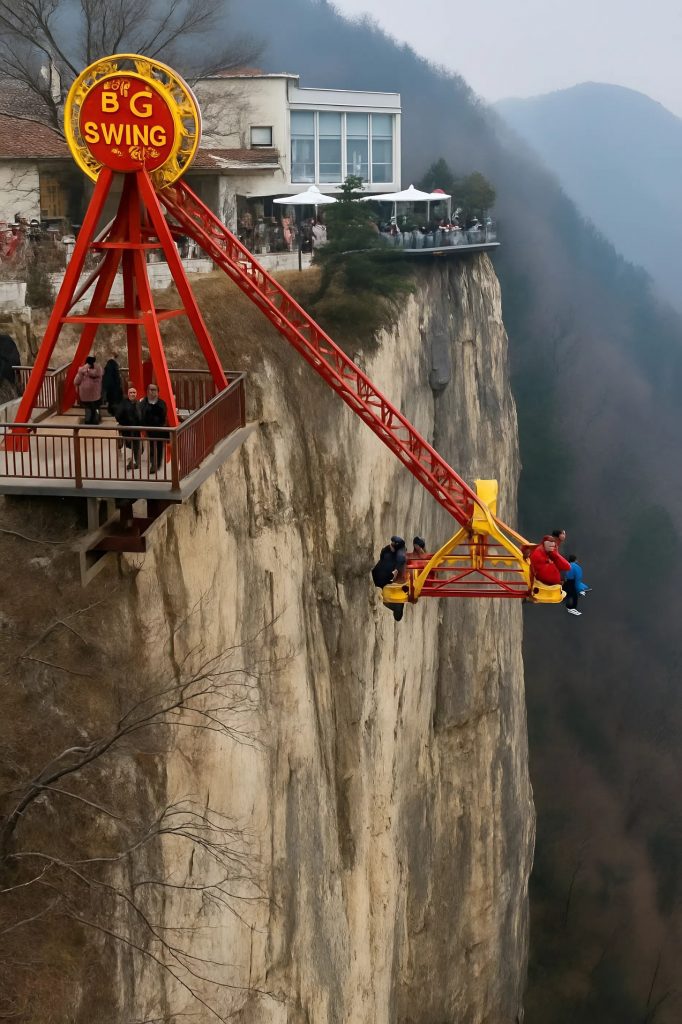 Pak přišlo to nejhorší — mechanismus povolil. Konstrukce se začala trhat dolů v prudkých skocích, jako obrovská kovová klec utržená z řetězu. Turisté křičeli, drželi se zábradlí, padali na zem nebo zoufale objímali své blízké.