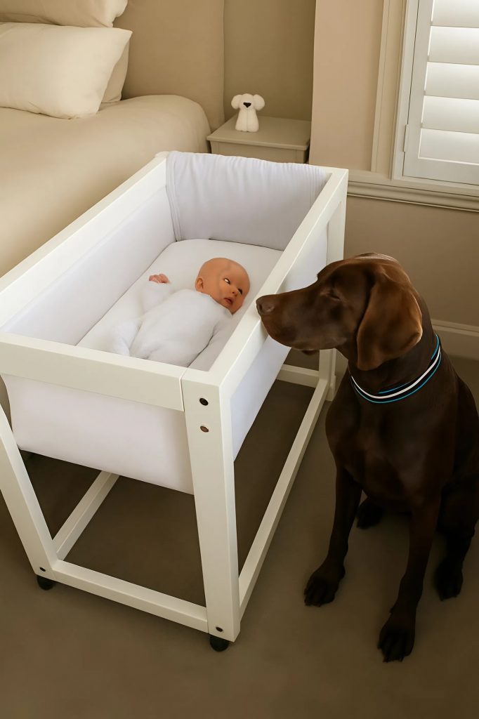 Ano, postýlka byla poškozená — dřevo roztříštěné, látka roztrhaná. Ale pes se nepokoušel dítěti ublížit. Naopak: zoufale se snažil dostat dovnitř, aby ho ochránil.