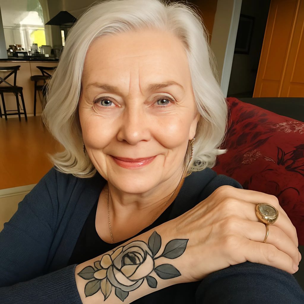 V útulném tetovacím salonu si vybrala jemný, elegantní motiv, který odrážel její životní cestu. Když tatér dokončil svou práci, Alice nemohla odtrhnout oči — tetování zářilo na její kůži jako připomínka: věk je jen číslo, které nemá moc nad duší. 🤔