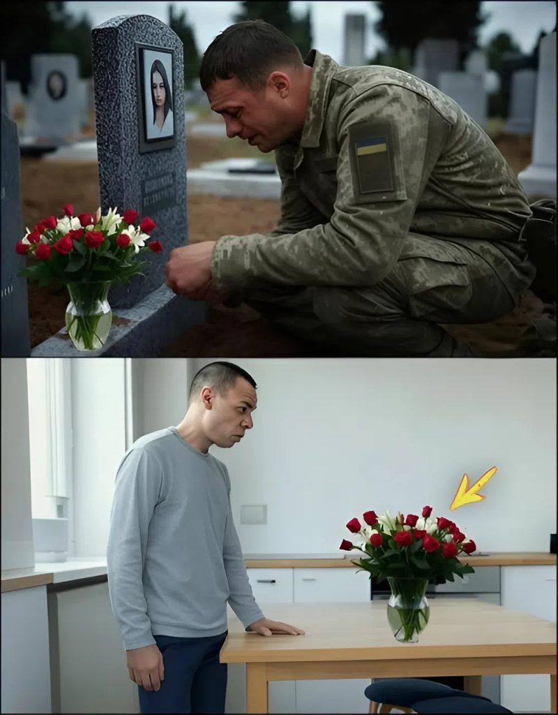 A v ní – přesně ty samé květiny, které toho rána nechal na hrobě.