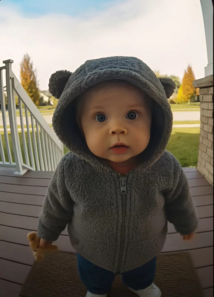 Krásná, čistě oblečená, s nadýchanými tvářičkami a malým plyšovým medvídkem v náručí. Stála u dveří, dívala se přímo do kamery zvonku – a čekala.