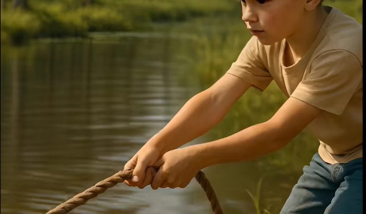 Zatáhl znovu – silněji. Lano se napjalo, voda se rozvířila a z hlubin se začalo něco zvedat.