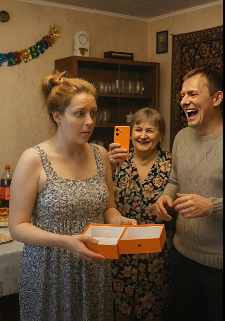 Třesoucími se prsty jsem zvedla víčko… a ztuhla. Krabička byla prázdná. Žádný telefon, žádná nabíječka, nic – jen prázdný plast. Manžel se rozesmál nahlas a jeho matka natáčela moji reakci – protože právě ten iPhone, který jsem čekala, dostala ona.