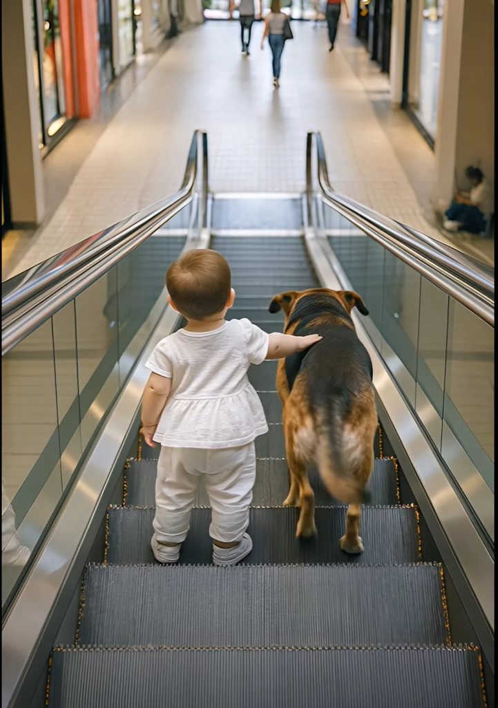 Na eskalátoru přede mnou stála malá holčička – sotva rok a půl stará, v bílé mikině a legínkách. Vedle ní – velký pes, pravděpodobně německý ovčák. Dítě se drželo jeho husté srsti, jako by to byl ten nejjistější zábradlí na světě. A co bylo nejděsivější – žádní dospělí nikde kolem.