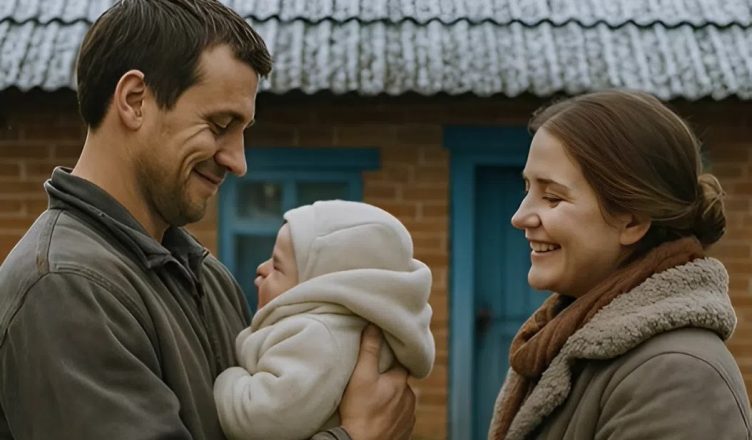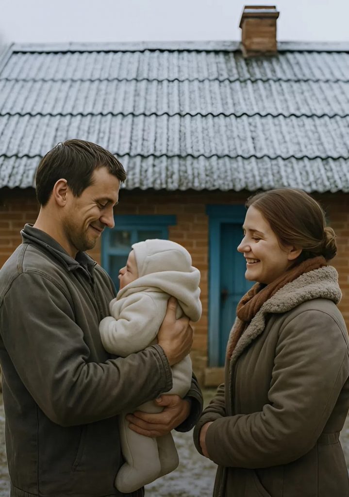 Pomalu přistoupila ke dveřím, opatrně je pootevřela — a spatřila muže kolem čtyřicítky. Byl promočený, promrzlý na kost a v rukou držel malé dítě, zabalené v tenké dece.