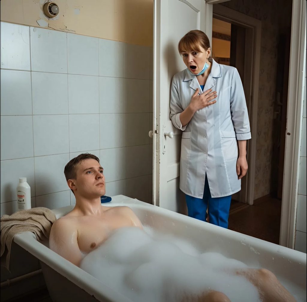 Nabrala houbu, omočila ji v pěnové vodě a začala mu jemně mýt ramena. Všechno bylo tiché, až příliš tiché. Jen kapky vody dopadaly na dlaždice.