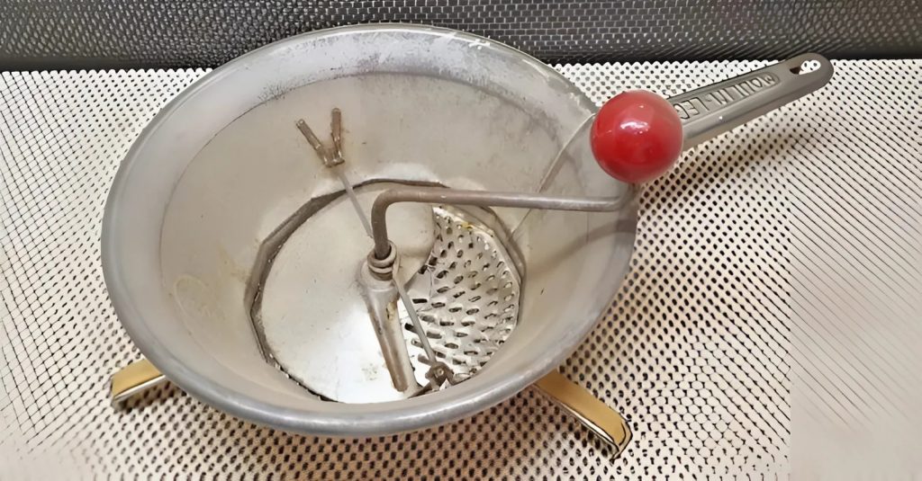 Jednoho dne jsem vešel dovnitř a na poličce mezi starými konvicemi a hmoždířem jsem uviděl něco zvláštního. Byl to těžký litinový předmět s dlouhou zahnutou rukojetí a malým sítem na konci. Vypadal jako něco mezi naběračkou a starodávným nástrojem na něco, co už nikdo nepoužívá. Opatrně jsem ho vzal do ruky. Byl studený, drsný a zanechal mi na prstech jemný prášek ze stárnoucího kovu.