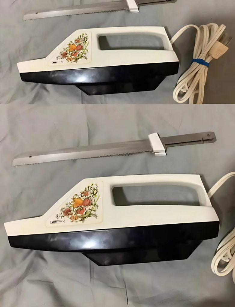Na první pohled by si člověk mohl myslet, že jde o starožitnou žehličku — možná dekorativní kousek s květinovým vzorem, jaký býval na ubrusech našich babiček. Ale zdání klame. Tento zvláštní přístroj je ve skutečnosti kuchyňská elektrická pila – zařízení, které dnes vzbuzuje údiv, ale kdysi bylo symbolem moderní domácnosti.