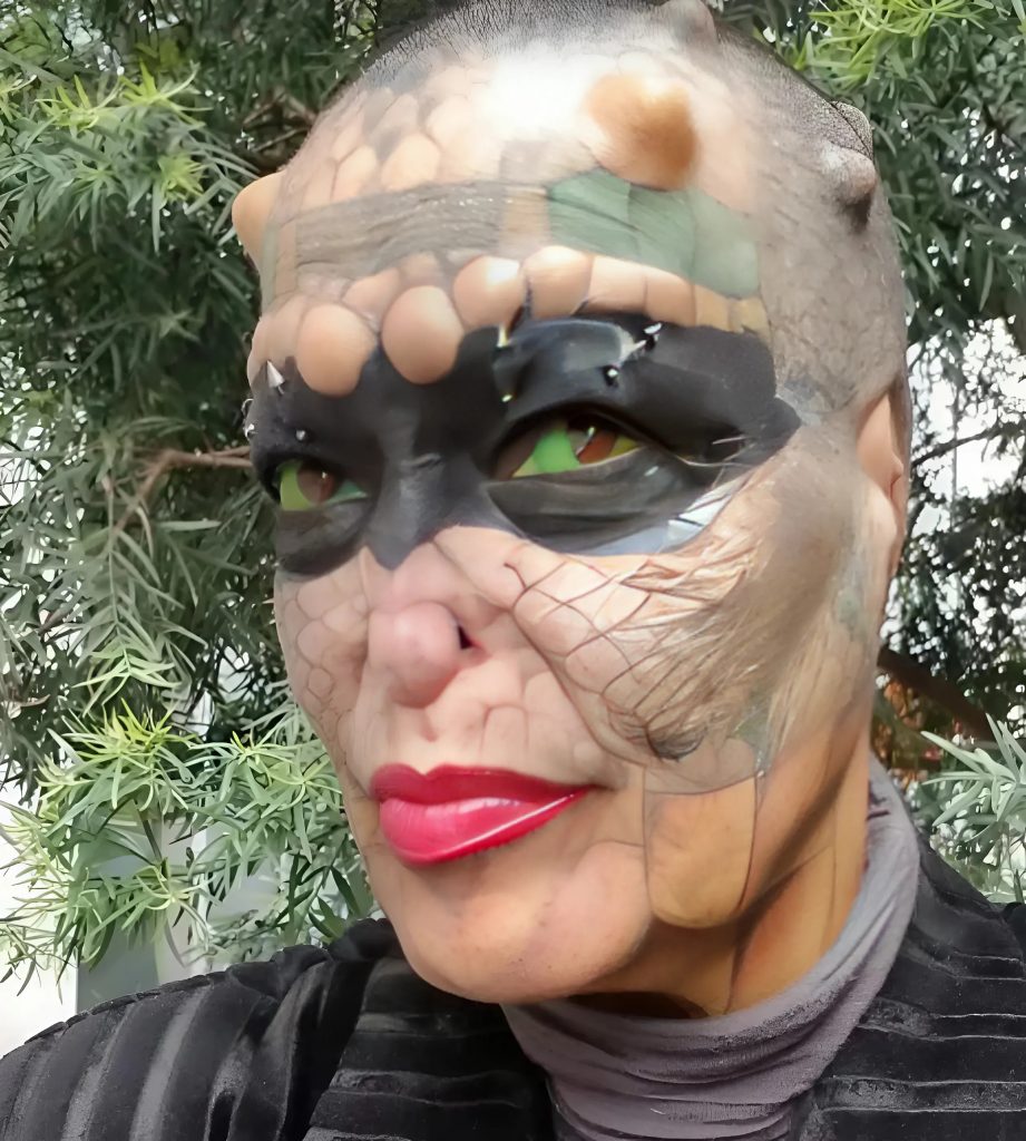 Nechala si vytetovat celé tělo motivy hadí šupin.