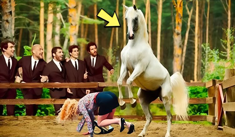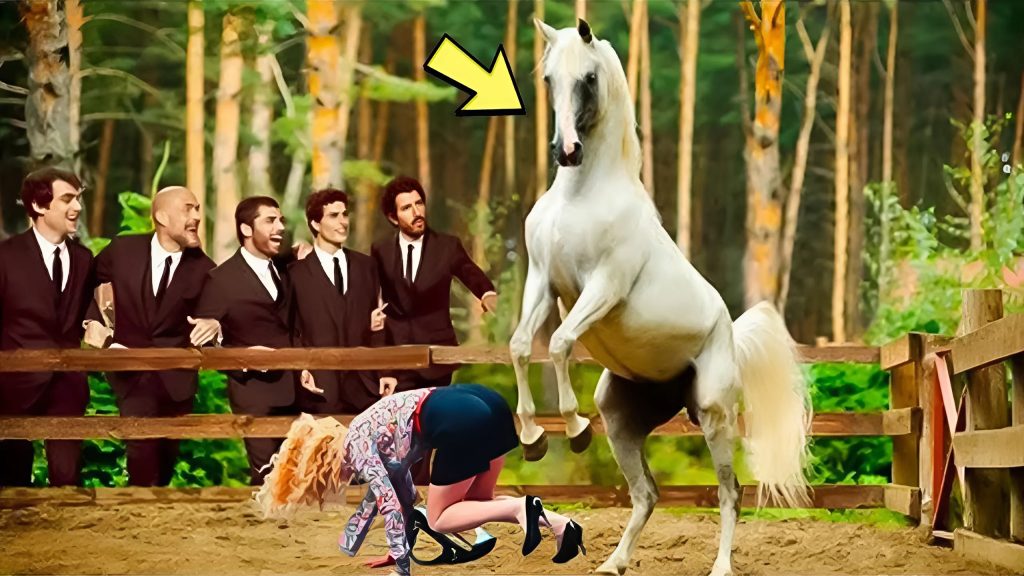 „Budeš tam vypadat úžasně! Holé nohy, bílé šaty, silný kůň vedle — to bude fotka!“ zaznělo. Všichni se smáli. Jen jeden z pracovníků stáje tiše poznamenal: „To není dobrý nápad. Ten kůň je unavený, trénoval. Není to hračka.“ Ale varování zapadlo bez pozornosti.